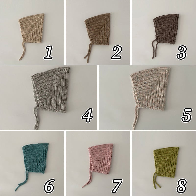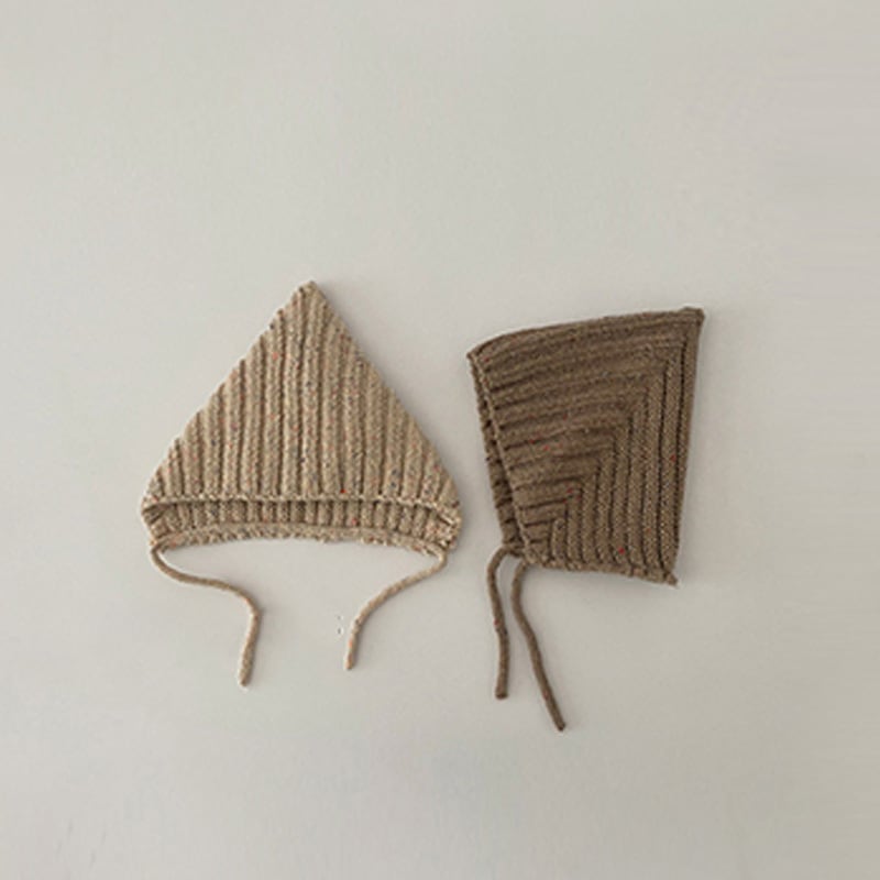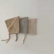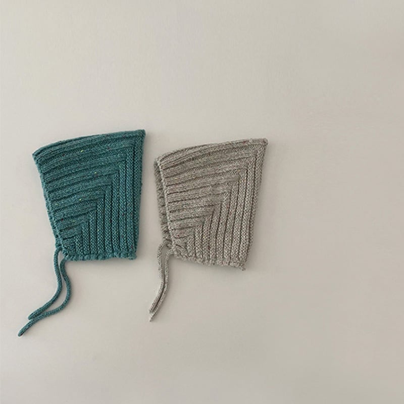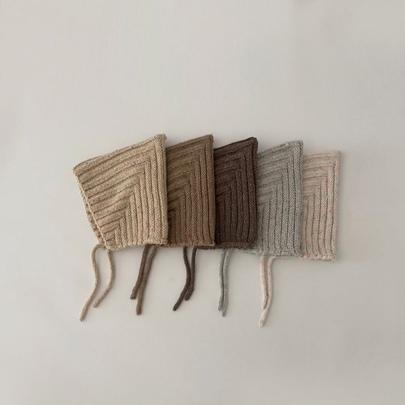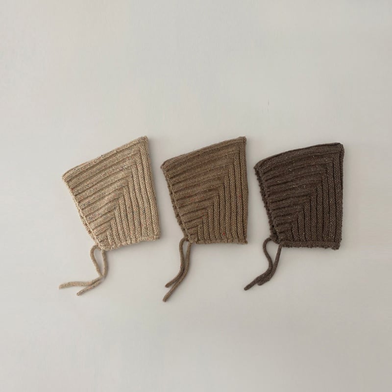 ニットのボンネット。小物でいち早く秋を取り入れるのなんてどうでしょう。ボンネットベビーたまらないです。