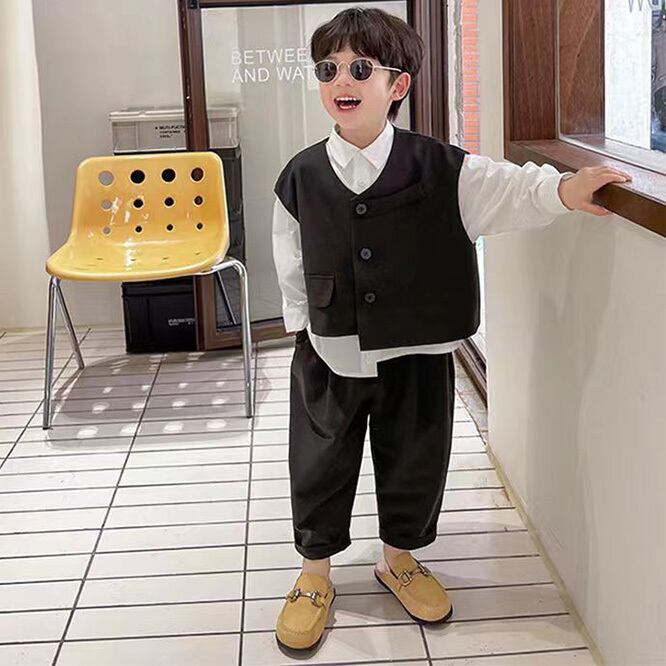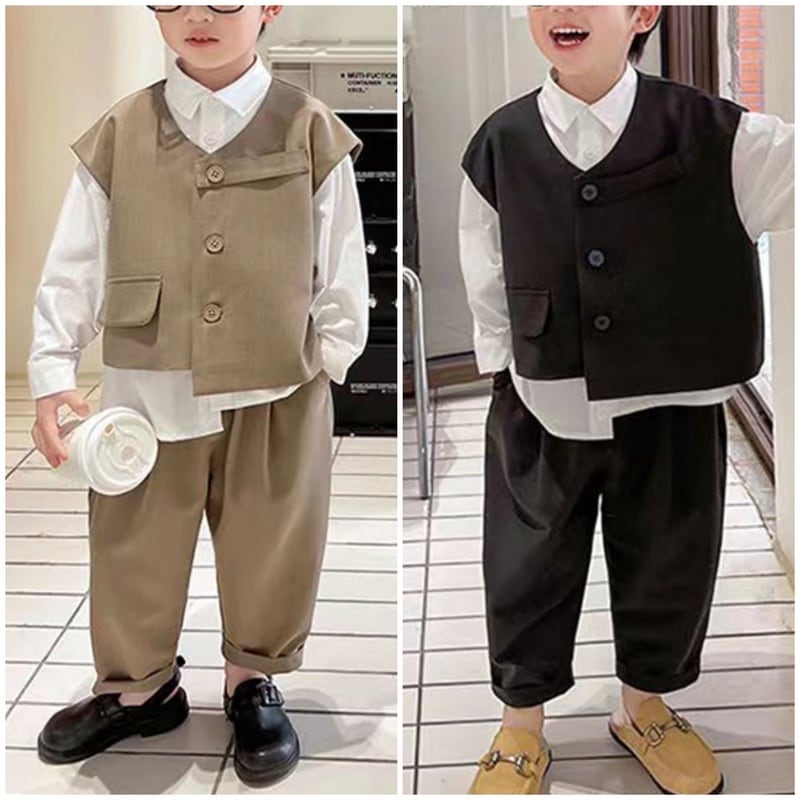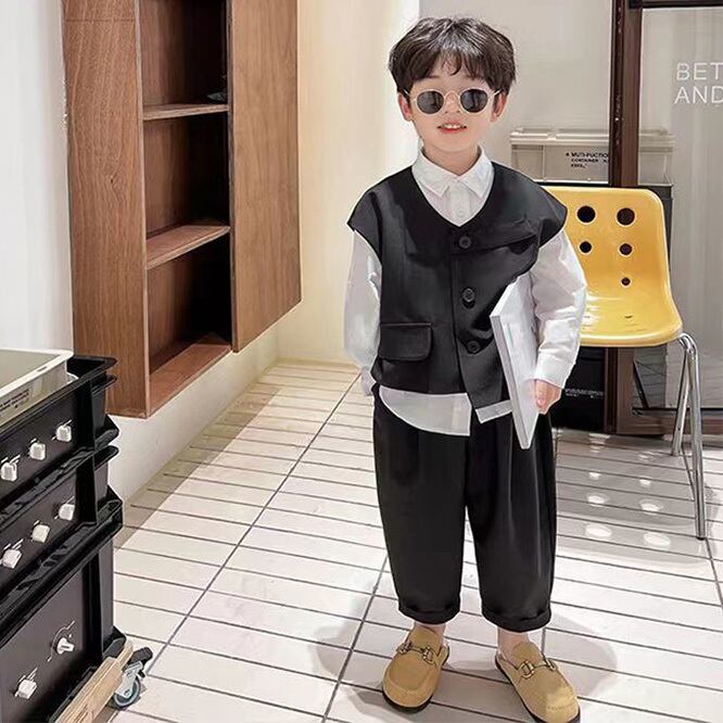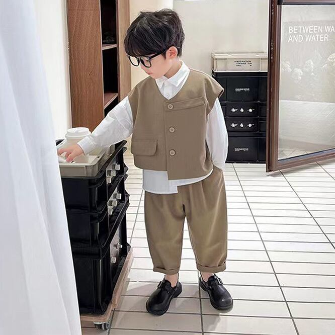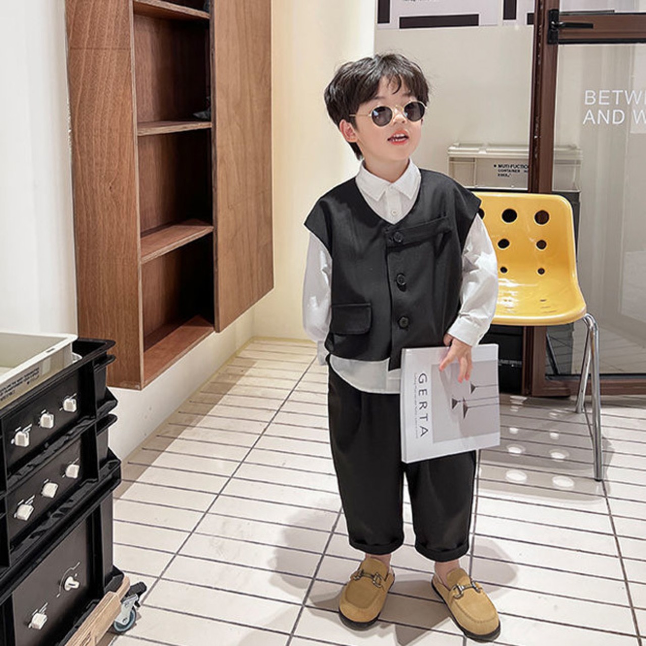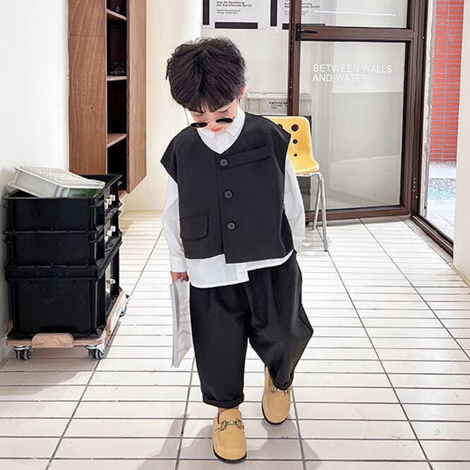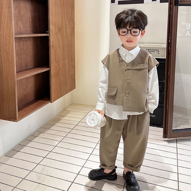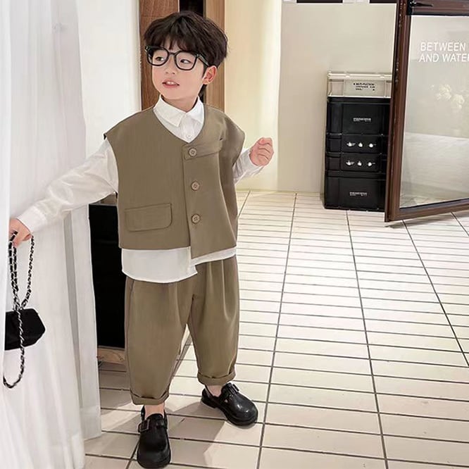 パンツ・ベスト・シャツの3点セット。入卒や結婚式などおめかししつつ堅苦しくなく着用できます。coccoloらしいフォーマルスタイルをぜひ。