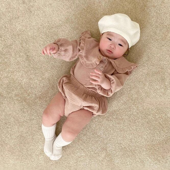 洗えば洗うほど柔らかくなるコットン素材。柔らかい雰囲気で心地よい着心地です。タイツや靴下で遊びを入れてオリジナルの着こなしを。