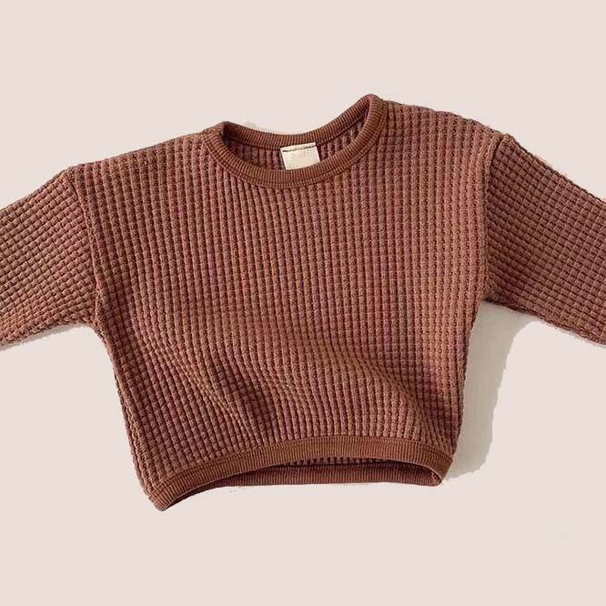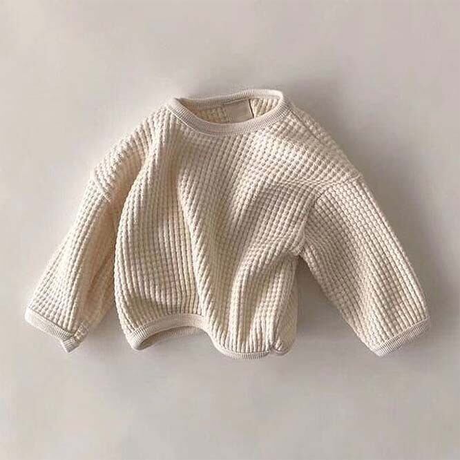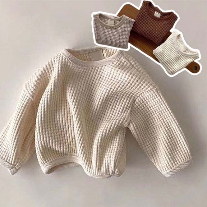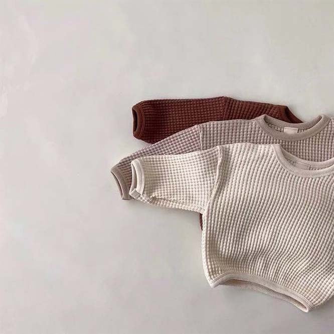 ワッフル素材ですが、とても生地がしっかりしておりシンプルですが高見えトップス。保育園・幼稚園にも使える万能で色違いで持っていても使える。