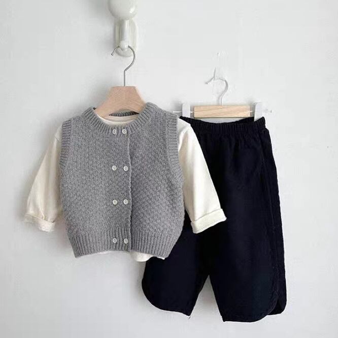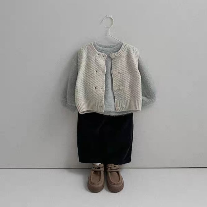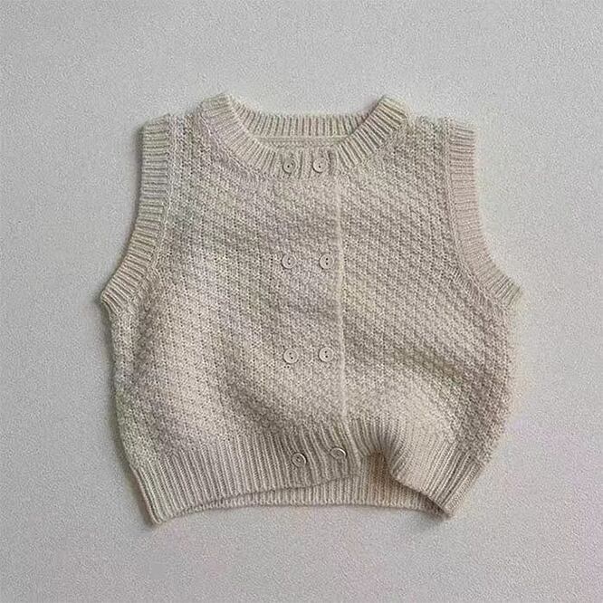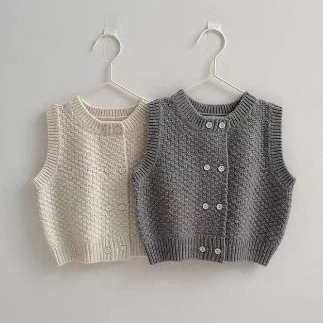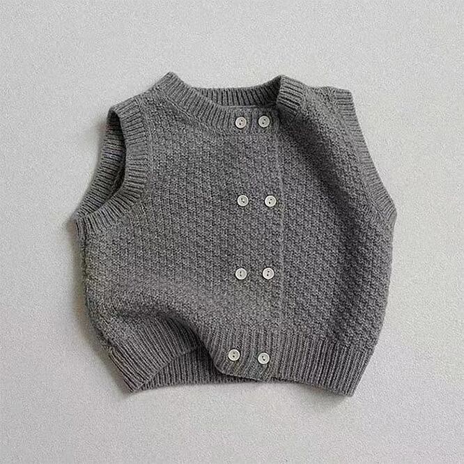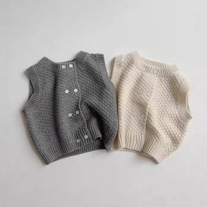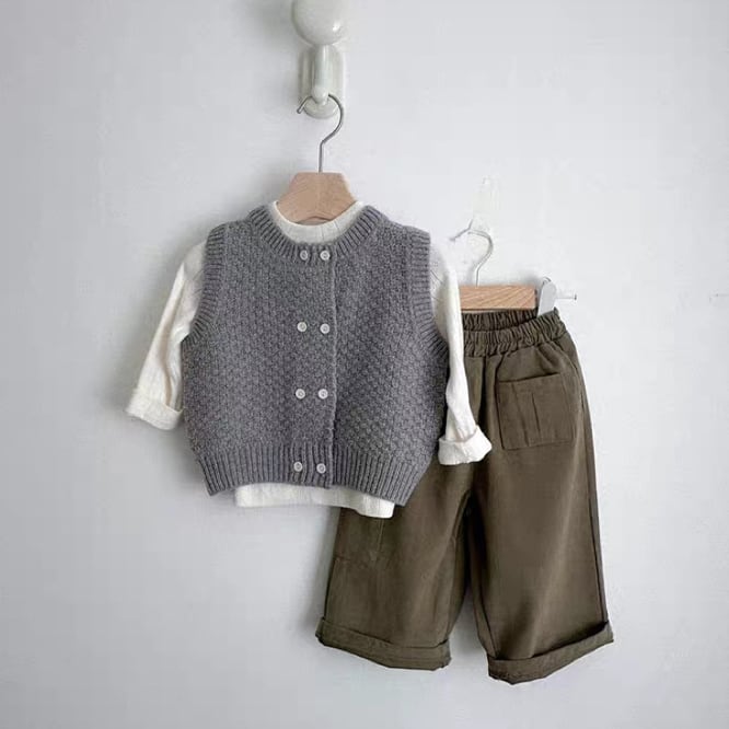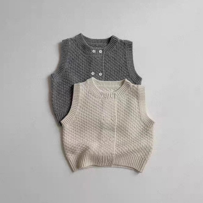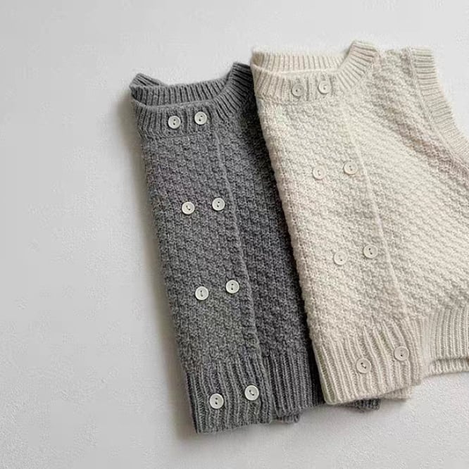 ダブルボタンでクラシックな雰囲気になるニットベスト。レイヤードスタイルで意外と重宝するのでこの機会にぜひベストを。