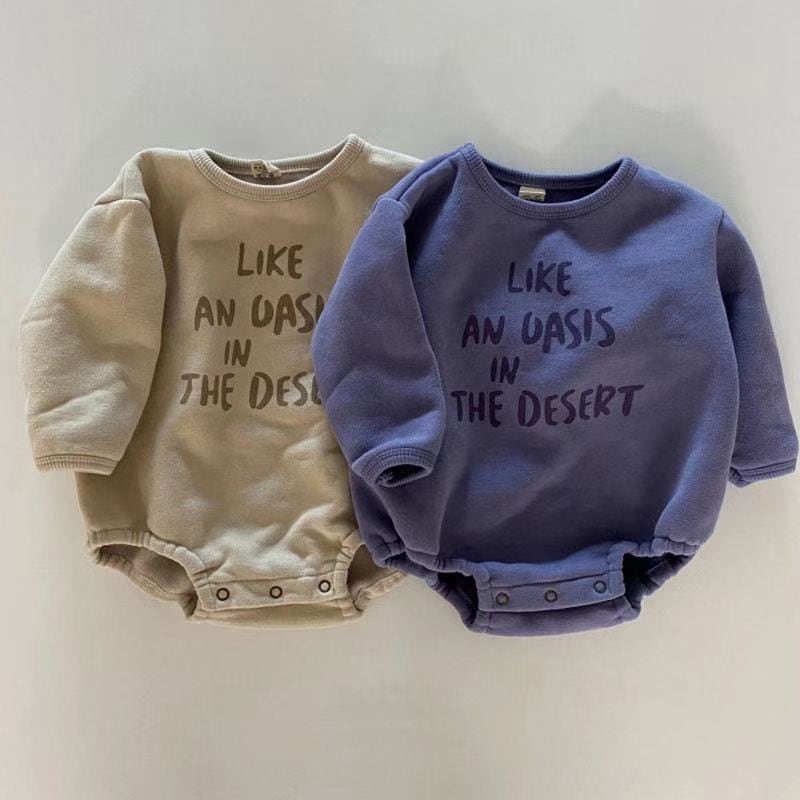ヴィンテージ感あるスウェットロンパース。タイツや靴下で遊びが効く、シンプルだけど色味や素材感で他にはない雰囲気。