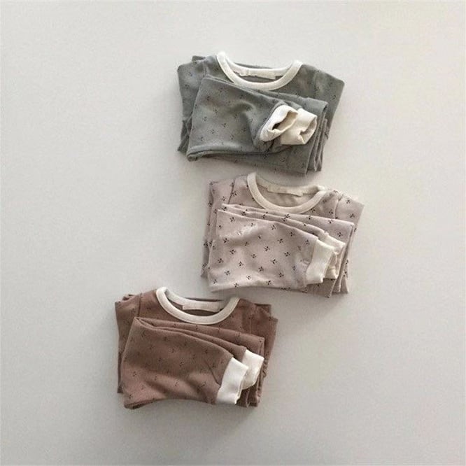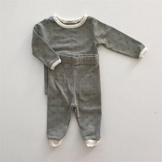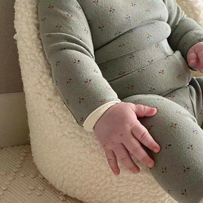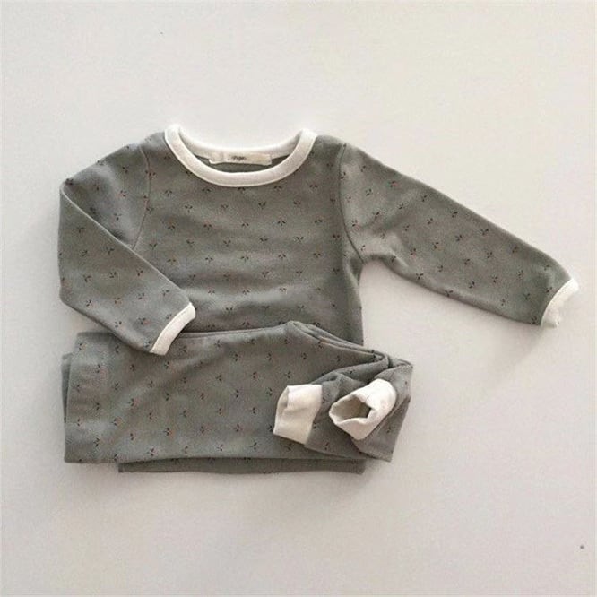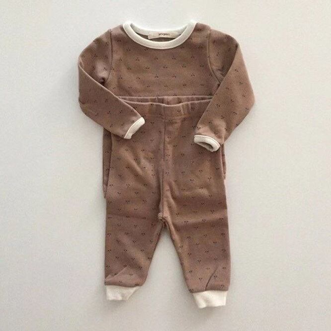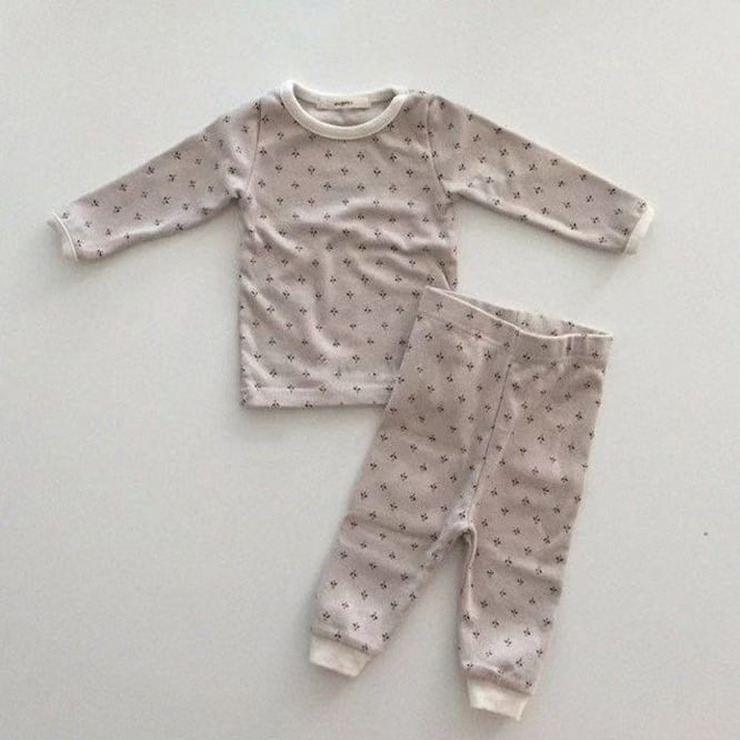小花柄の優しい雰囲気のセットアップ。色味も海外らしいくすみ色で気分の上がるcoccoloのお洋服。保育園のお洋服としても大丈夫なセパレート。