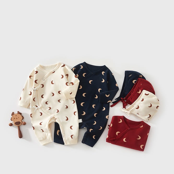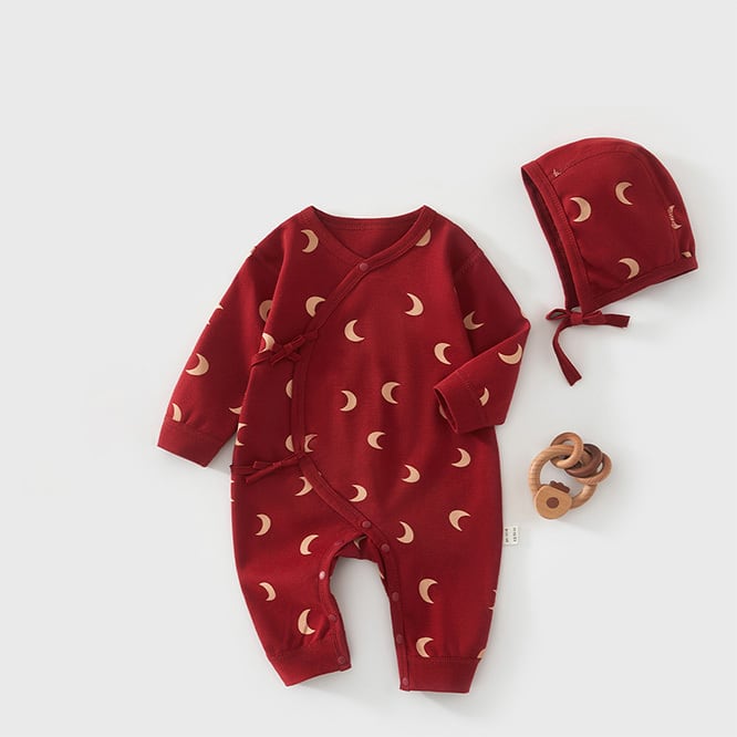 *moon rompers with bonnet*月柄ロンパースボンネット付き 52-80cm