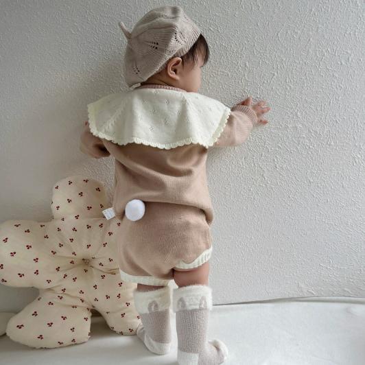 淡い色味がとてもかわいい。お尻のポンポンがポイント。性別問わず着用してほしいです。