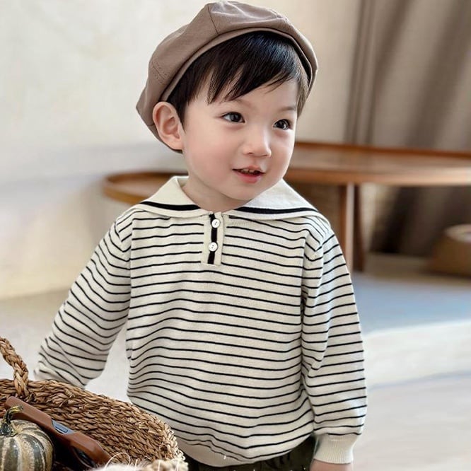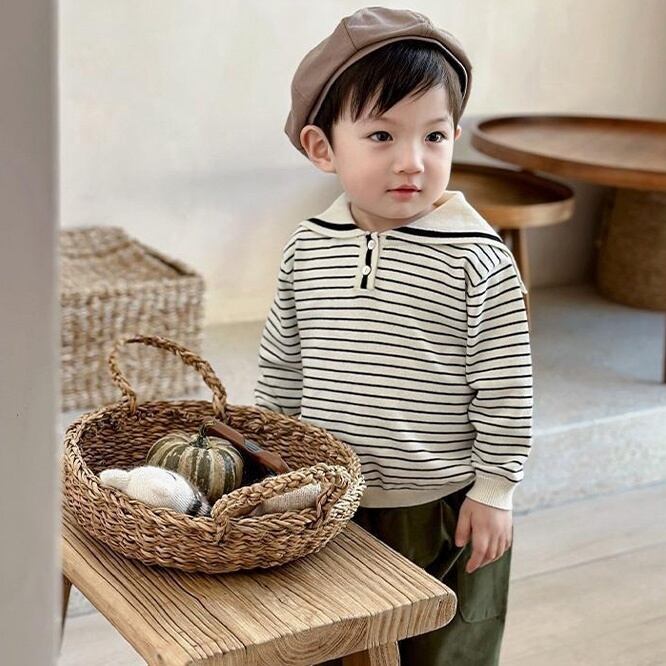 同じシリーズのロンパースもあるのできょうだいコーディネートやリンクコーディネートにぜひ。春先も1枚で様になる褒められニット。