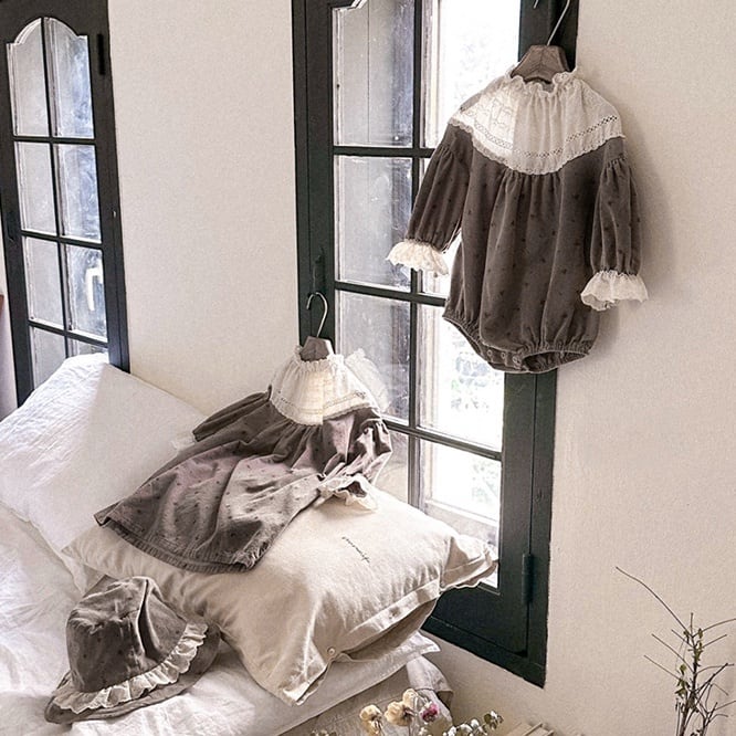雰囲気からしてたまらないデザイン。韓国っぽい・海外っぽいが融合されたロンパース。