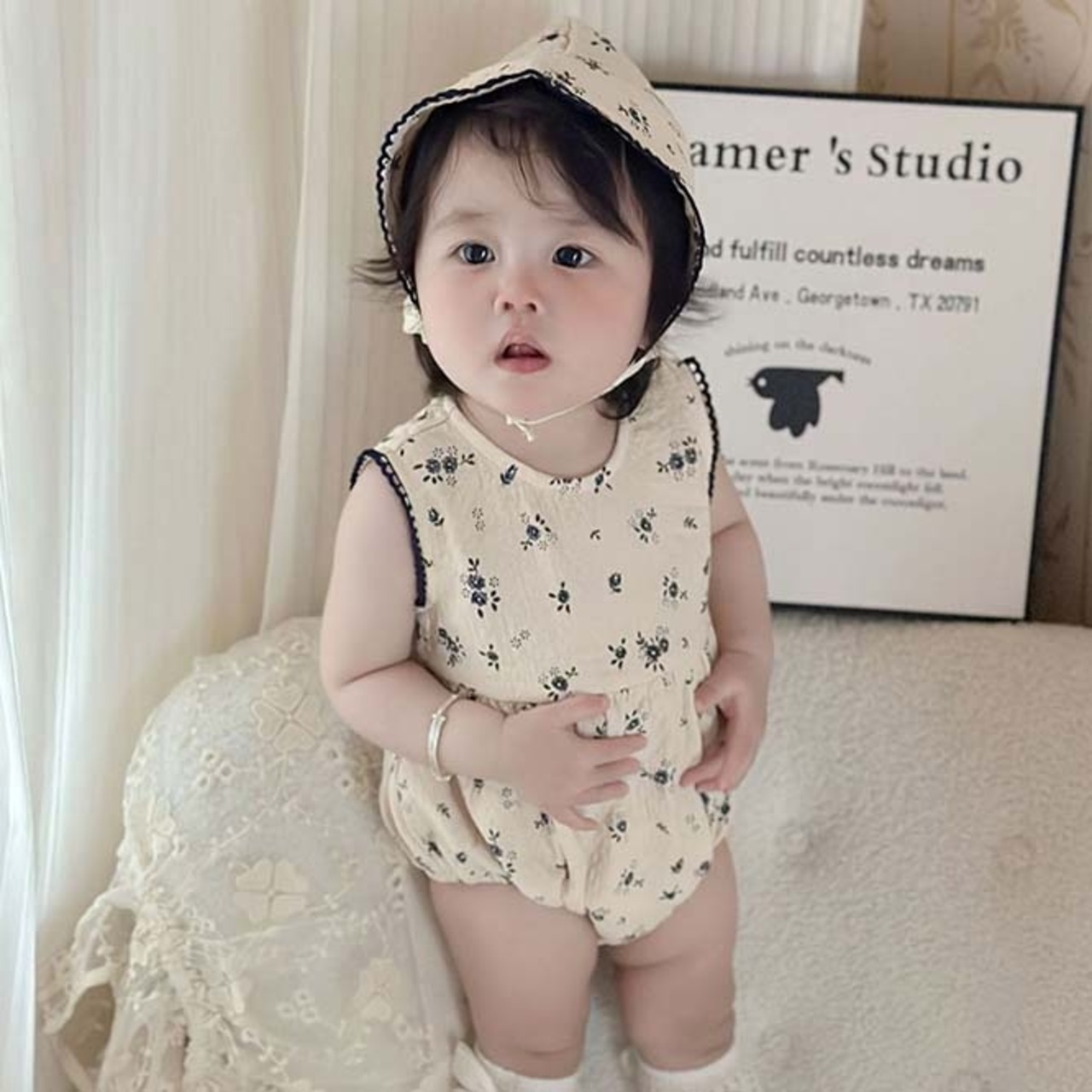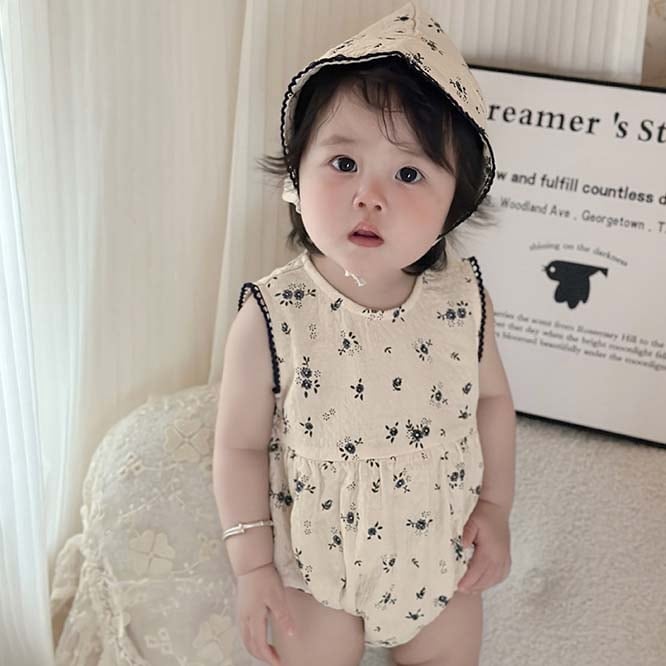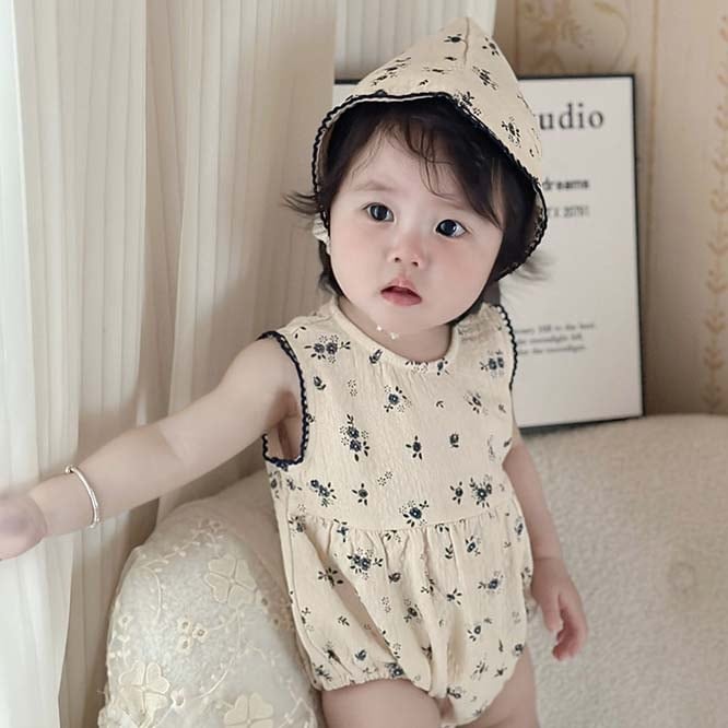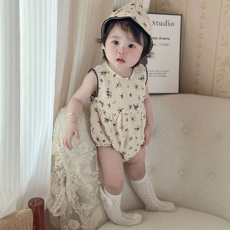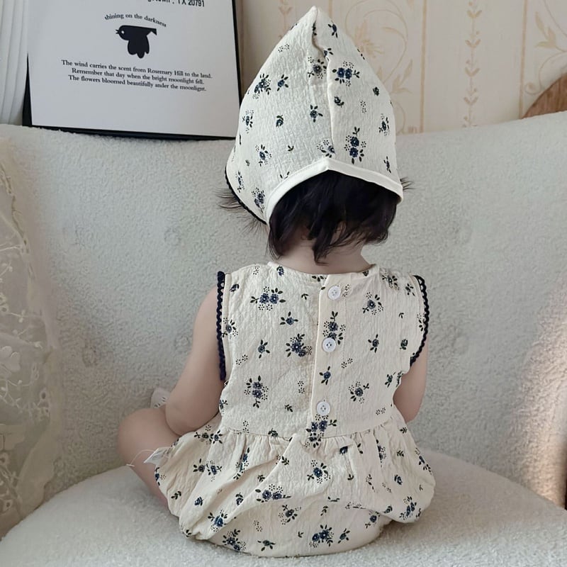 *small flower rompers with bonnet*小花柄ロンパースボンネット付き 66-90cm