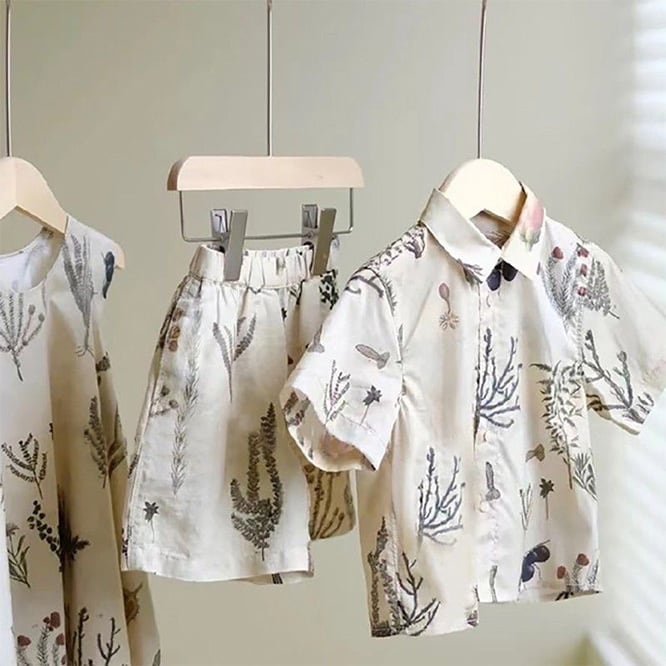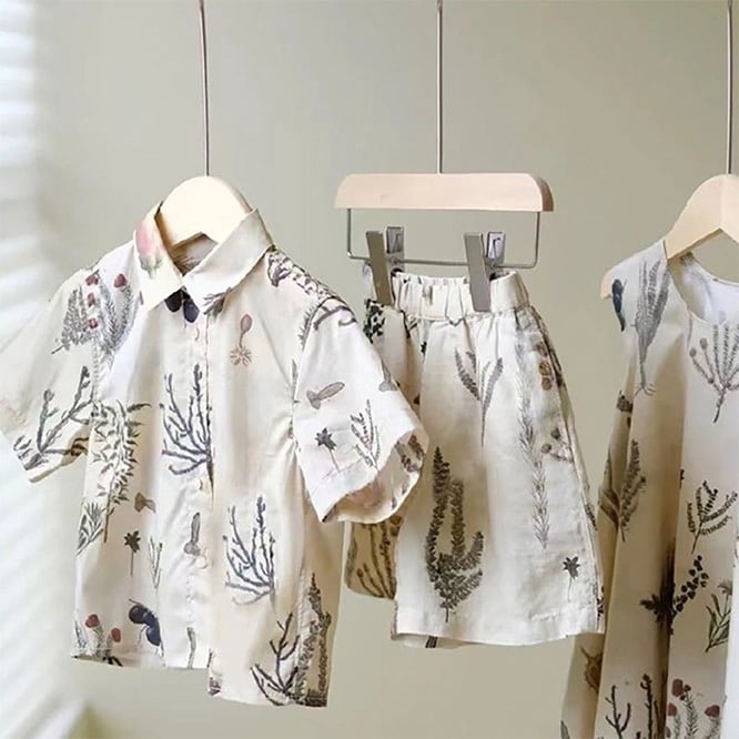 ナチュラルにおしゃれでスタイリッシュなセットアップとワンピース。きょうだいコーディネートでもおすすめ。