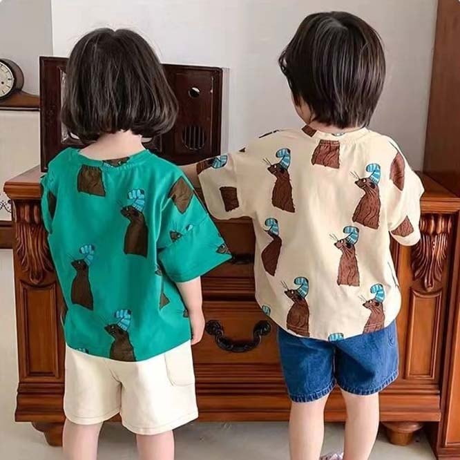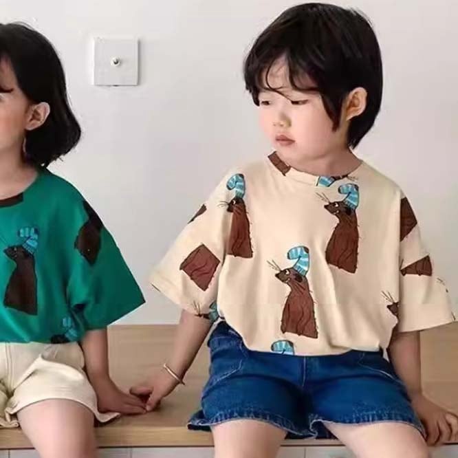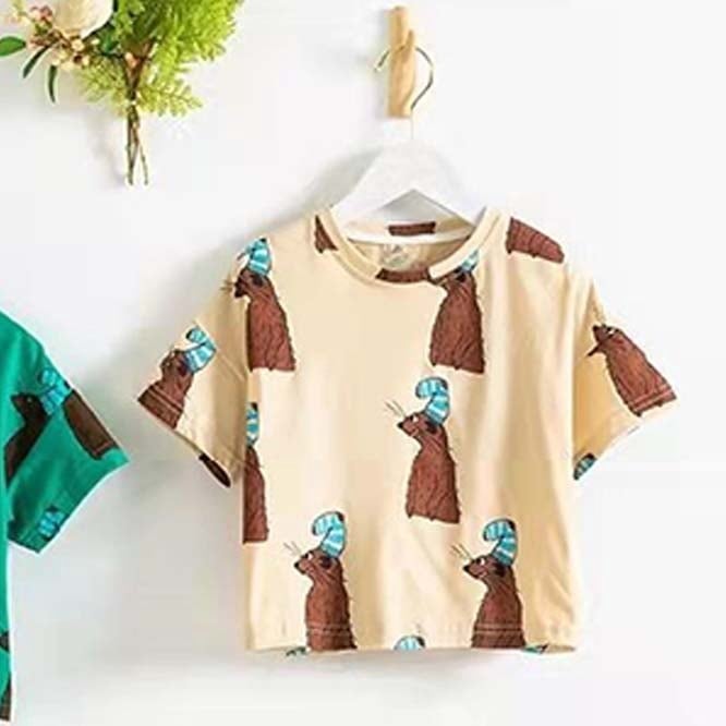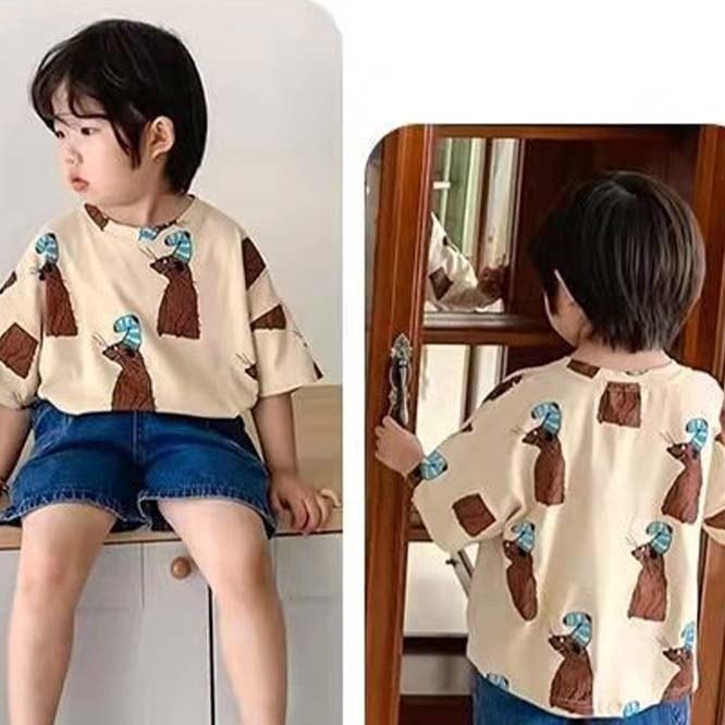 ゆるいアニマルプリントがとても可愛らしいTシャツ。色々なボトムスに合う柄です。