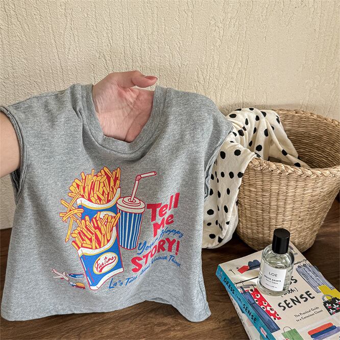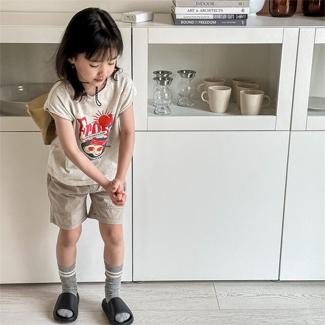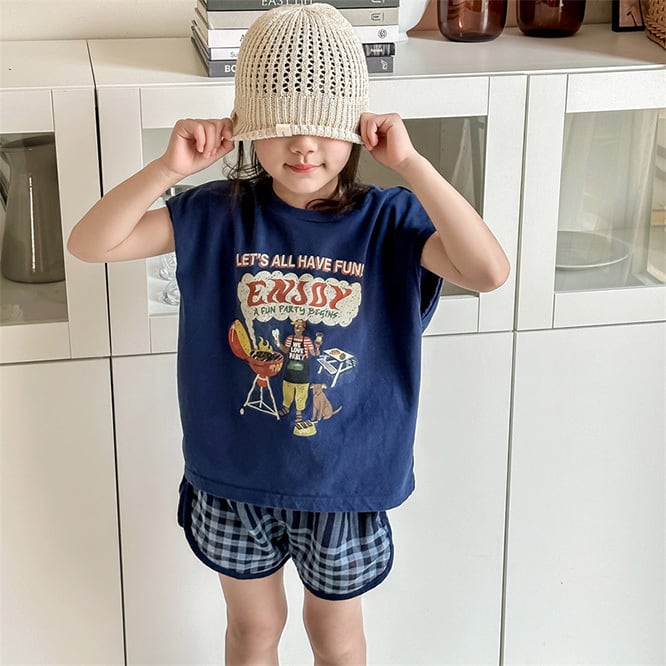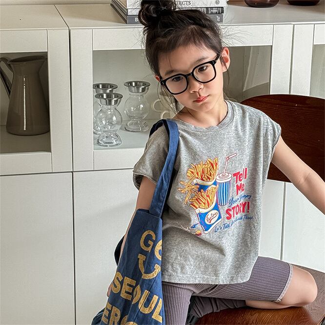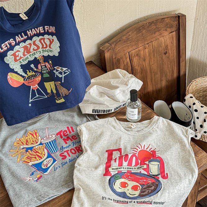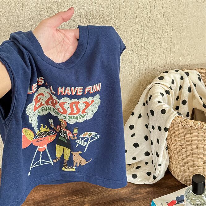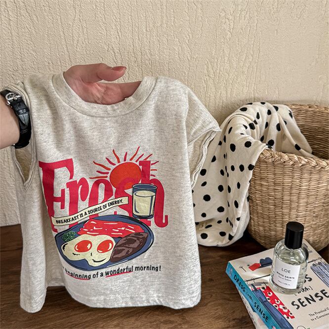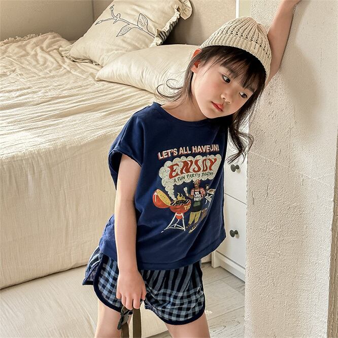 古着感あるプリントTシャツがとてもかわいいです。お子様らしいコーディネートを楽しんで下さい。