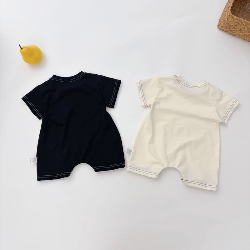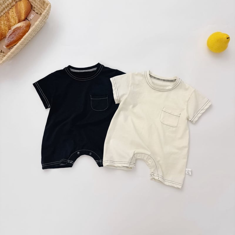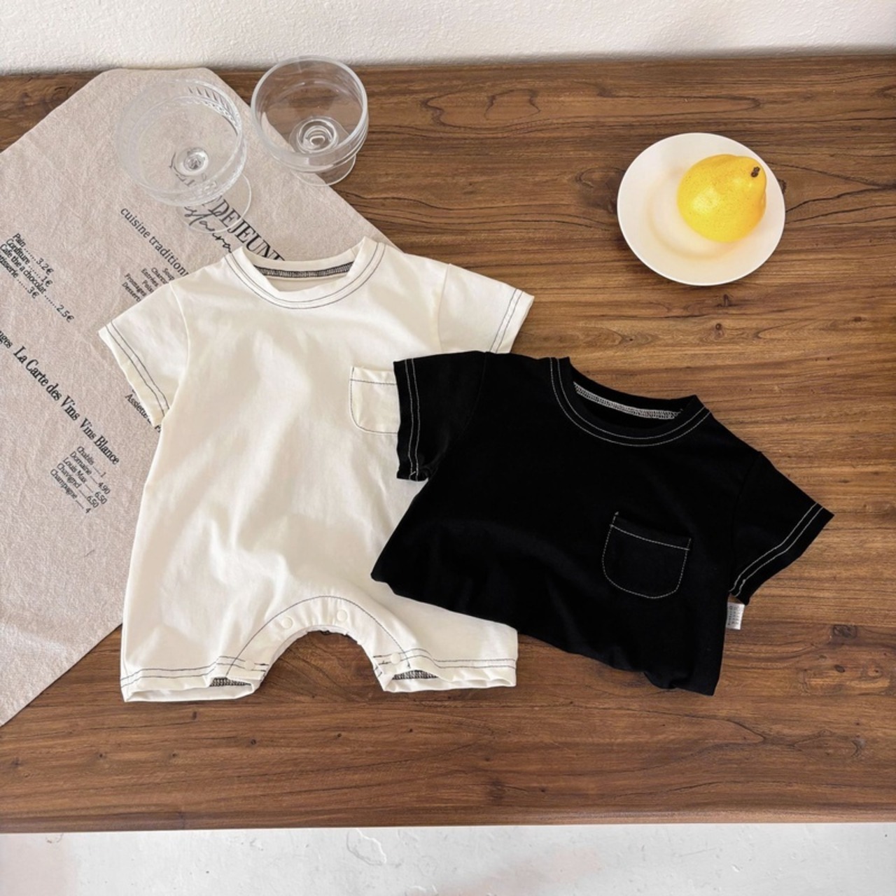シンプルなロンパースなので小物などでコーディネートが楽しめるのがポイント。